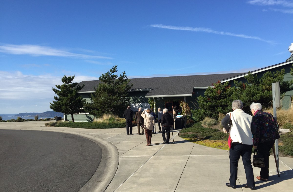 We’ve never been to nearby Chambers Bay Golf Course, though we have seen in on television. When a trip to the Chambers Bay Grill came up on our monthly Lunch Bunch schedule, we welcomed the chance to go see the place for ourselves. A lot of other people had the same idea, as we had a group of 28—enough that we had to use both of Franke Tobey Jones’s busses.