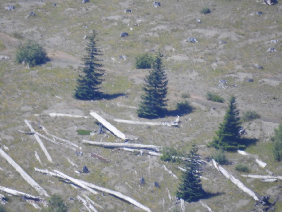 (2) You can still see evidence of the downed logs that covered the area around the volcano like matchsticks as a result of the eruption: