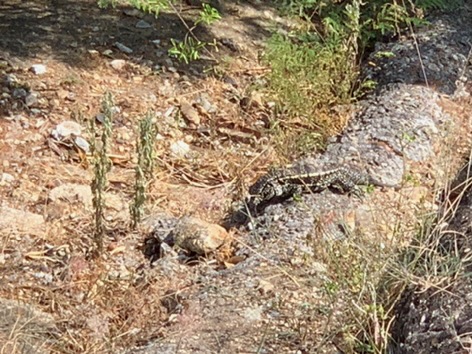 On our way back to the ship we drove by the beach but weren’t able to get any decent pictures. The beach was amazingly crowded, with umbrellas and chairs about 10 deep along the water. The temperature was about 97 F, so there were paths from the beach up to the sidewalk along the street sprayed with water so beachgoers wouldn’t burn their feet. The sidewalks along the beach feature mosaics similar to those in the central plaza.