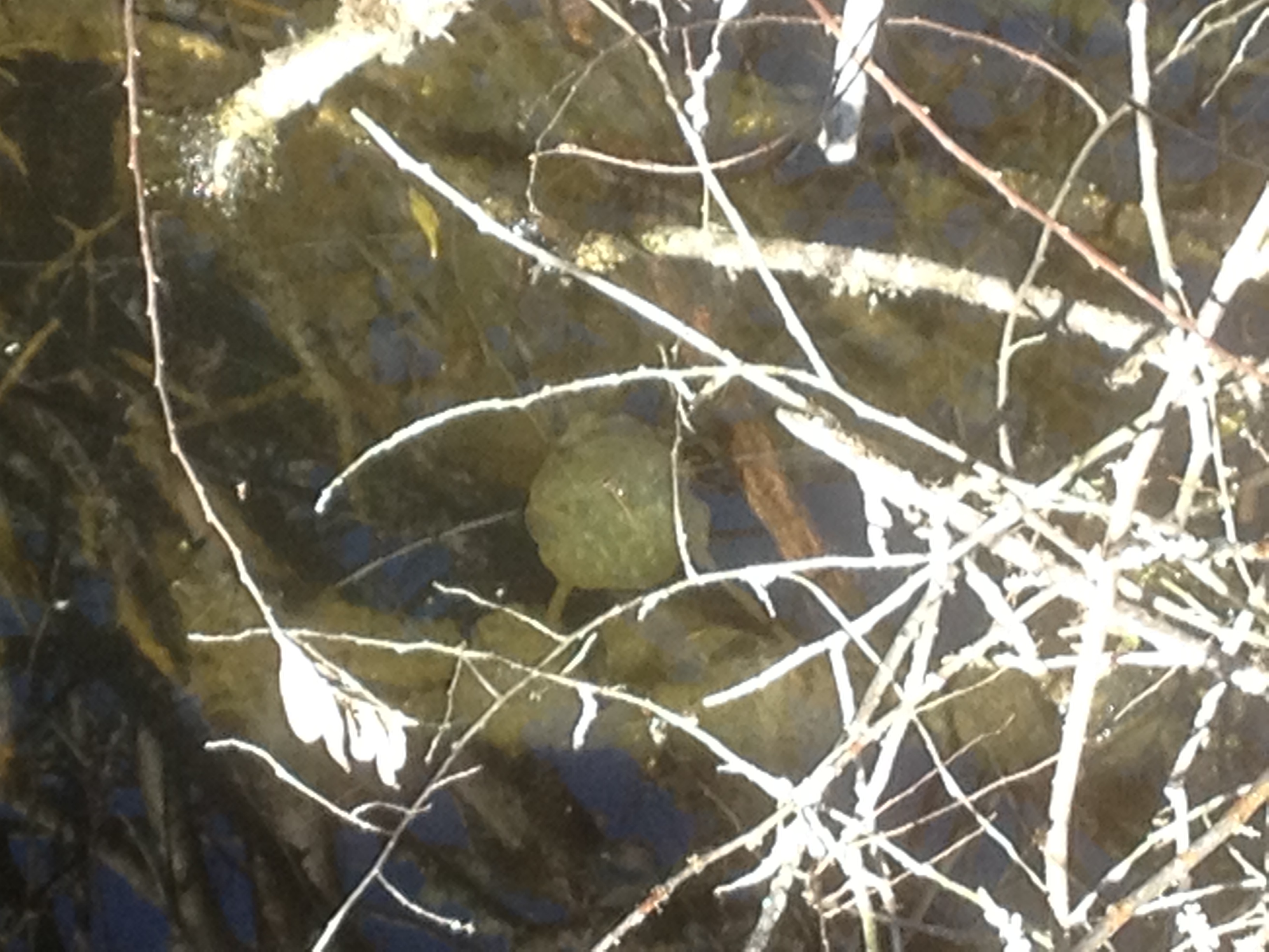 When we first arrived, we heard frogs croaking (probably Pacific tree frogs), but we never saw them. We also saw a pair of Canada geese swimming on the lake. We also saw the colorful male wood duck and several turtles on logs, but they were too far away to be photographed with a camera phone. But I did get a picture of this pair of mallard ducks: