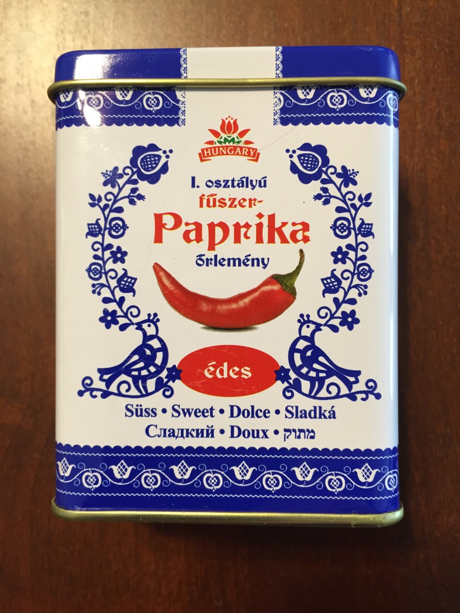 Now I’m sure I made goulash a few times while she was growing up, but I was still surprised that she took such an interest in it. We didn’t buy many souvenirs, but we did buy her a tin of paprika in Budapest: